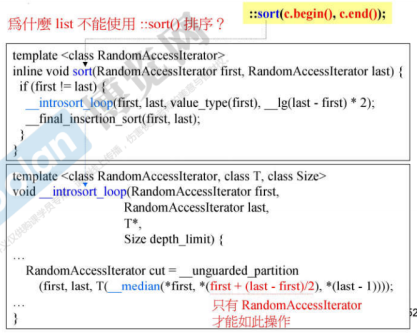 ::sort函数中会将指针(迭代器其实就是泛化指针)进行加、减、乘、除的操作- 要支持加、减、乘、除操作的迭代器,一定是