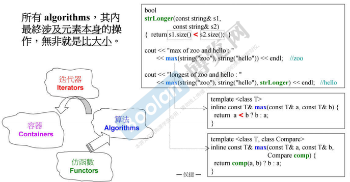 - 容器可能要视需要重载<、>等操作符,让算法能够调用