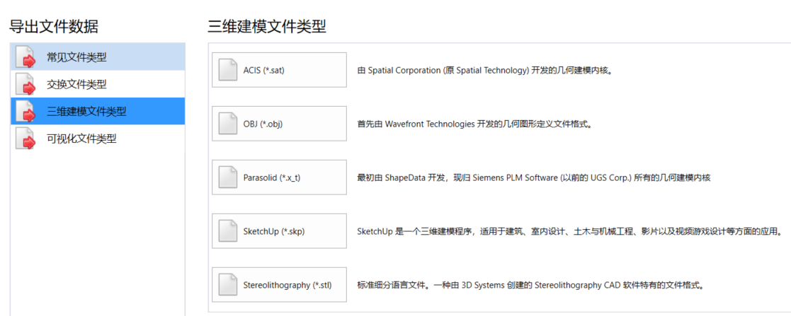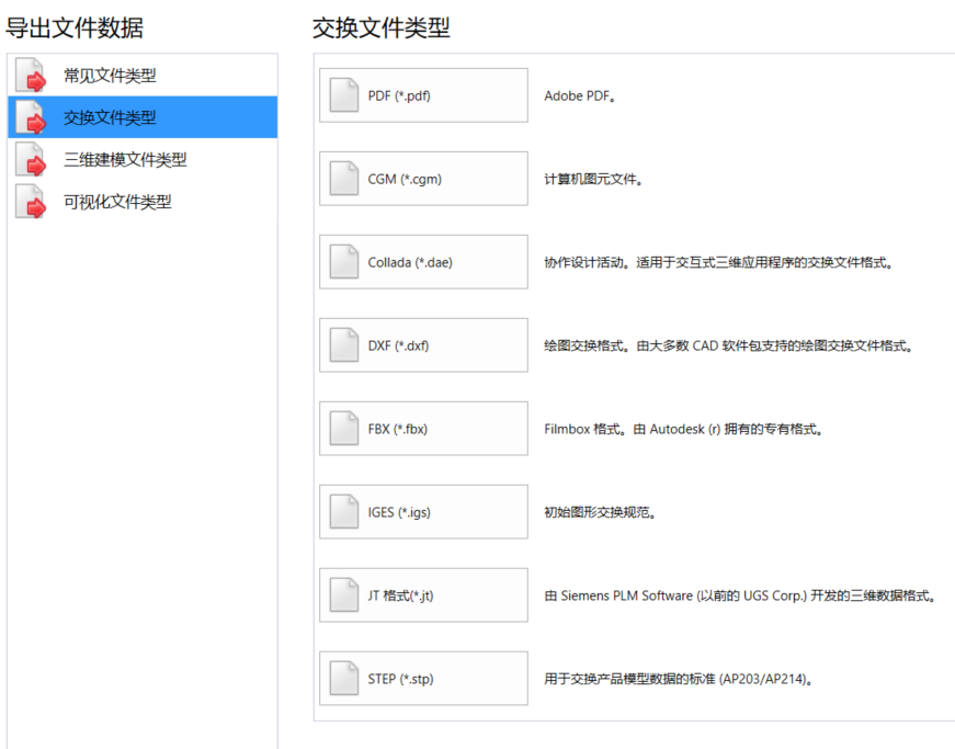 “批转换”所支持的“输出格式”:DGN V8、DGN V7、DWG、DXF、IGES、STEP、CGM、XMT、SAT、STL。